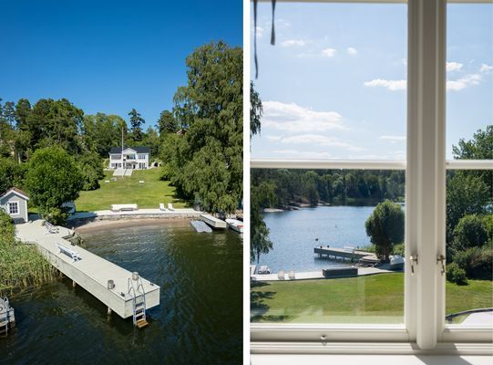 Fantastiskt och unikt sjöställe i privat söderläge med 13 bäddar fördelat på 3 hus. Två stora bryggor med utemöbler och segelbåtsdjup. Två små strä...