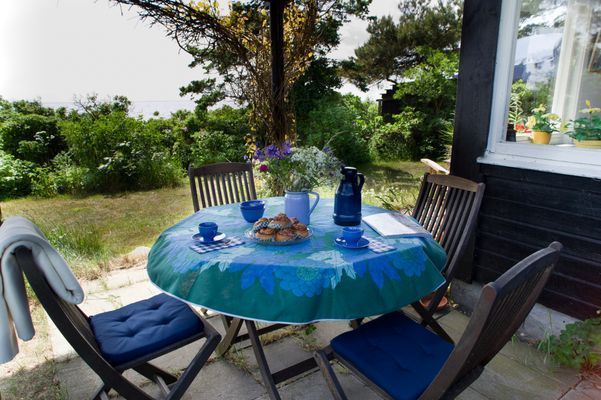 Stugan ligger på insynsskyddad strandtomt på Skånes sydkust, (ej stugområde), 8 m från strandkanten med en fantastisk utsikt på lugnt och naturskönt läge. Från gungstolen i vardagsrummet njuter du av havets oändlighet - här står tiden stilla!