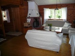 Timrat hus, stuga vid sjö, båt ingår, 150 m till sjön, badmöjligheter, fiskekort kan köpas.