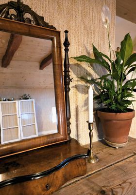 Mycket av inredningen i huset kommer ursprungligen från gården, och detta ville vi också ta tillvara på och ser det som antika loppisfynd från gården.