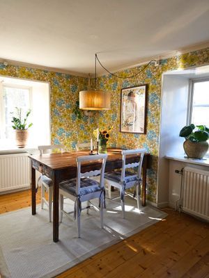 Här har generation efter generation bott, och alla de satt sin egna prägel. Vi har valt att ta tillvara på något från alla generationer och med det också bidragit med vår egna prägel. När vi flyttade in gjorde stora delar av 70-talet sig påmind och vi har valt att bevara en liten del av det i varje rum.