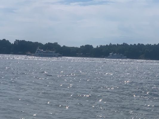 Waxholmsbåt-brygga ca 600 m från huset. Bil kan parkeras vid stugan.