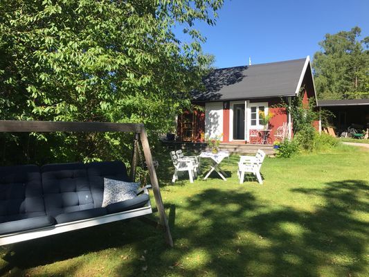 Stuga belägen i unik skärgårdsmiljö en dryg halvtimme från Stockholm. Det är ett gästhus i vår stora trädgård.