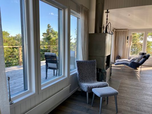 Med fantastisk utsikt över himmel och hav, ligger detta smakfulla hus med bastu och pool på en ö i Stockholms skärgård. Huset har charmigt läge med stor tomt på Stora Saxaren som är en ö mellan Grinda och Vaxholm.