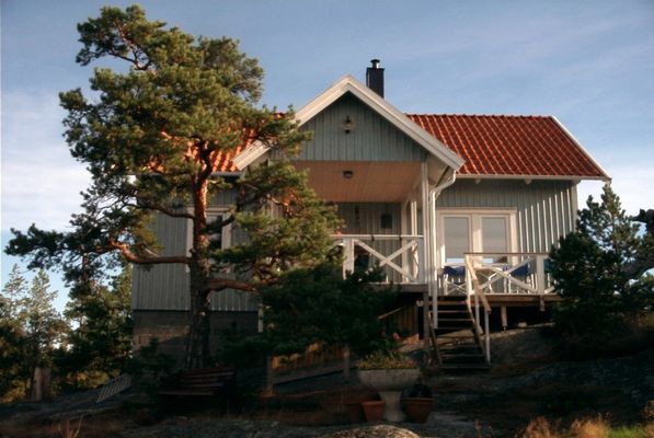 Högt belägen modern stuga med enskilt läge på Torö (Svärdsö) med milsvid utsikt över Stockholms