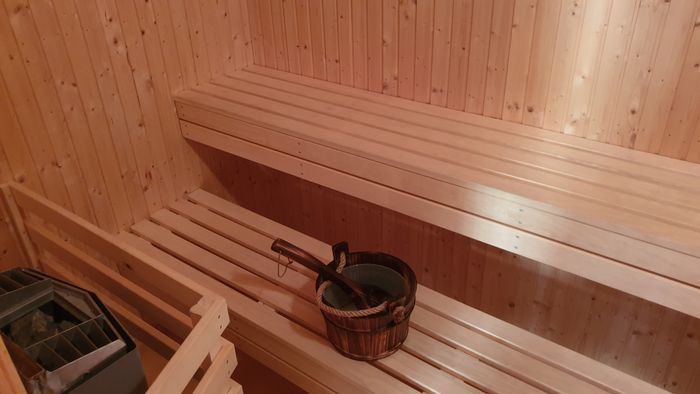 Trevlig och trivsam timmerstuga med 8 bäddar, uppdelat på 3 sovrum, öppen spis, bastu mm.