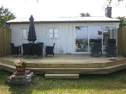 Stugan har två sovrum. Ett rum med en utdragbar dubbelsäng och ett rum med två sängar. Dessutom finns en bäddsoffa som snabbt omvandlas till en dubbelsäng.
