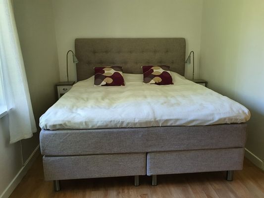 1 sovrum med dubbelsäng, 1 rum med utbäddbar säng och matplats,