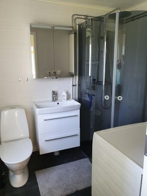 Välutrustad stuga 90 m2. 5 rum och kök. Elspis/ugn, kyl/frys, diskmaskin, micro,