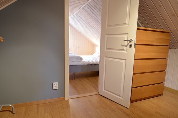 Ovanvåning med två sovrum. Ett till föräldrar och ett till barnen.