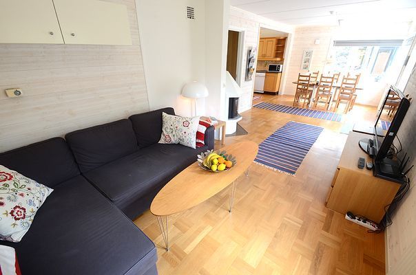 vattenkokare, brödrost finns. Stor matgrupp med 6 stolar. 1-2 barnstolar finns. Rymlig, ljus toalett med