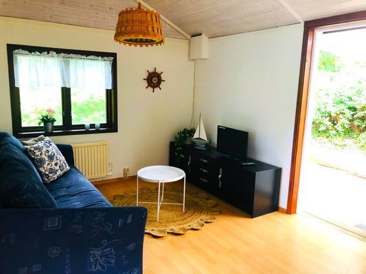 Det finns en 22 tums Tv med dvd spelare och ett urval av filmer att låna. Det finns inga vanliga tv kanaler eller wifi. Vi tipsar er om att ta med en egen enhet (tex Apple tv eller Chromecast) om ni vill streama tv via ert eget internet (dela internet från er telefon eller ta med ett mobilt bredband.)