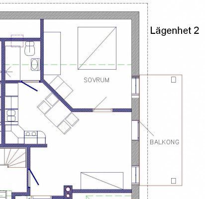 Del av nybyggt hus. Lägenheten färdigställdes 2006. Den är belägen på ett plan en trappa upp med stor balkong (10 kvm) och avskildhet. Den vetter åt öst-sydöst med en fantastisk utsikt, ro och soluppgång.