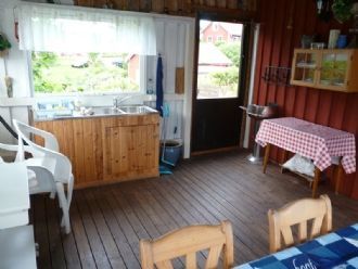 Stuga i skärgården mitt i Händelöps by. Händelöp är en ö ca 1 mil utanför Västervik med broförbindelse. Gammal fiskeby där det forfarande fiskas. Både badplats och härliga badklippor finns inom gångavstånd.