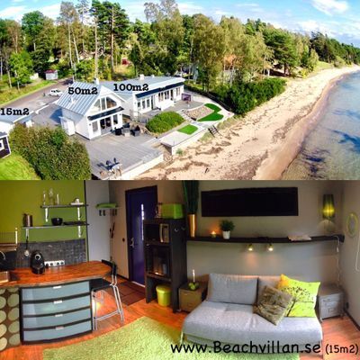 Några meter från Varamobadens 2km långa söderhavs liknande sandstrand ligger de 3 "designvillorna" beachvillan.se. Denna annons avser lilla huset (15m2) byggt 2013. Beachvillan15m2 ligger endast 15 meter från sandstranden och har mycket fin sjöutsikt. Sjön Vätterns vattennivå varierar varför sandstrandens bredd i anslutning till boendet kan vara allt mellan 0-30 meter.