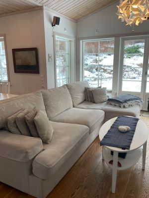 Hus: modernt utrustat kök, tvättstuga med torkskåp. 3 sovrum: 1 rum med dubbelsäng 180x200 med eget badrum med dusch och dörr ut till altan, 1 rum med stor säng 140x200, 1 sovrum med säng 105x200. Loft med bäddsoffa 90x200 alt 160x200 med smal trappa.
