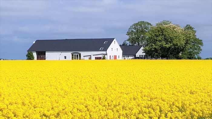 3 lägenheter tillhörande en kringbyggd gård i det öppna landskapet på södra