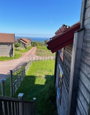 Intill hallen på den andra sidan finns kök och vardagsrum i öppen planlösning. Det finns en rymlig matplats för 8 personer och utgång till altanen med utomhusjacuzzin med magisk utsikt över Orsa sjön. Kanske är det Fryksås bästa utsiktsplats! Vardagsrummet har en trevlig hörnsoffa, liten fåtölj och en tv med basutbud på kanaler. Här finns även en braskamin för extra mysfaktor efter en lång dag i skidspåren, eller en regnig höstdag.