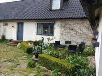 Du bor i en vacker kringbyggd Skånegård med kullerstensbelagd innegård .Där du har en egen uteplats, just nu fylld härligt blåregn. Huset är två plan om totalt 100kv.