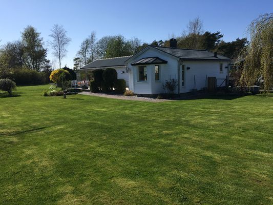 Vi erbjuder ett härligt hus med stort utedäck, uppvärmt spa och stor gräsmatta.