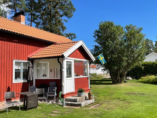 Gästhuset ligger på samma tomt och nära ägarens åretrunt bostad.