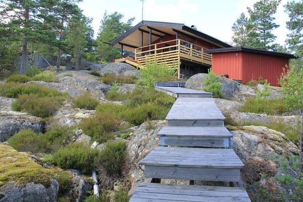 Välkommen att hyra mitt weekendhem, på Hölö/Stavsnäs, Värmdö, högt uppe på ett berg med milsvid härlig utsikt över Nämndöfjärden både från vardagsrum och uteplats. Om du vill vila blicken lite mer så går du ner till soldäcket som finns längre ner på tomten.
