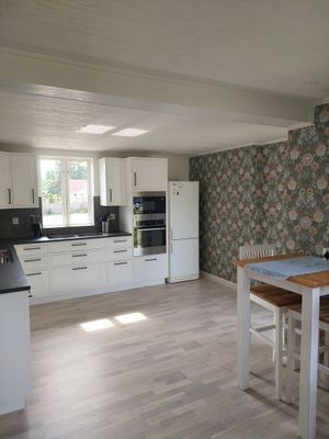 Ica-butik, bageri, resturang och kiosk finns inom 900 m avstånd. Villan är belägen på en stor natursköntomt med gräsmatta både bakom och framför huset med mycket insynsskydd från grannar.