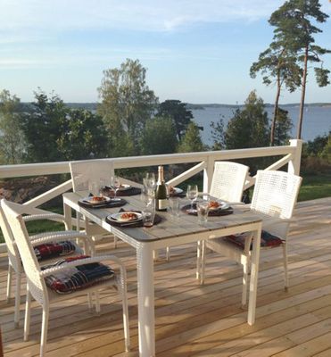 Ett öppet generöst sommarhus för bekvämt och rofyllt boende med tre separata sovrum, stor altan med kvällssol och vidsträckt utsikt över Sandöfjärden på norra Värmdö. Huset är ljust och modernt inrett med ett stort allrum med braskamin och fullutrustat kök. Helkaklat badrum med wc, dusch, tvättmaskin och torktumlare. Huset ligger lugnt och avskilt bara fem minuter från Norråva Golfgård och Horisont Kajak uthyrning, och endast ca 45 minuter från Stockholm med bil.