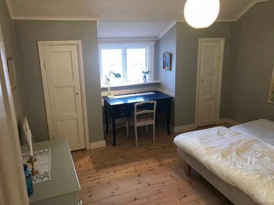 Köket är i gammaldags stil men fullt utrustat. Badrum med dusch och WC. Från vardagsrummet och matsalen har man en fantastisk utsikt över sjön. På bottenvåningen finns också ”kajutan”, ett litet mysigt sovrum för en person. På övervåningen finns två rymliga sovrum, båda med två sängar. Är ni många kan vi ordna med fyra uppfällbara extrasängar.
