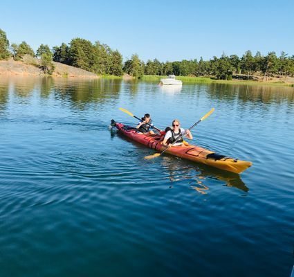 Nära havet, vi har en bryggplats med en styrpulpet motorbåt (40 hp) man kan hyra om man vill (4700kr/vecka). Vi hyr även ut en tvåmanskajak (1300kr/vecka) , som man kan rulla ner på vagn till bryggan. Ca 400 - 500 meter till bryggan. Finns även cyklar att hyra (200 kr/ vecka).