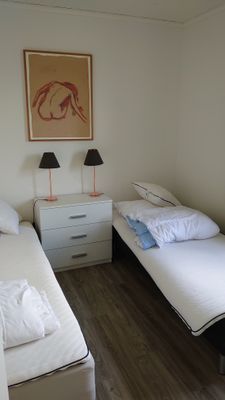 I villan finns också en lägenhet med två bäddar eget badrum och kök med diskmaskin helt utrustad för eget boende. Här kan man bo med husdjur