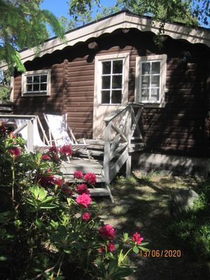 Stuga vid havsvik 1,5 mil öster om Norrtälje(Björnösund)Stugan delar tomt med vårt boningshus,men man ser ej mellan husen pga växtlighet. Ca.15 km till Kapellskär och ca. 80 km till Stockholm och Uppsala.2 rum+bastu o liten relaxdel.2 våningssängar samt en madrass att lägga på golvet.Spis med 3 plattor o ugn,micro,kyl o frys och TV samt Vinylspelare o MÅNGA Nostalgiska Vinyl-skivor!