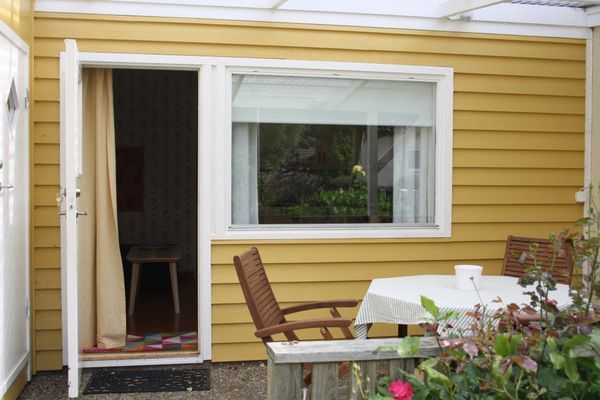Denna gemytliga , möblerade stuga, ligger i Strandbadsskogen med endast 5 minuters gångväg till fantastisk sandstrand. Omgivningarna inbjuder till underbara promenader och cykelturer (Kullaleden och Kattegattleden).Egen avskild uteplats under tak. Storstuga med bäddsoffa, matplats, TV och fullt utrustat kök. Sovrum med 2 bäddar. Toalett/dusch intill sovrummet. Tillgång till tvättstuga i villan intill. Rökning inomhus ej tillåten. Husdjur ej tillåtna. Lakan och handdukar kan hyras. Slutstädning kan fås mot avgift.