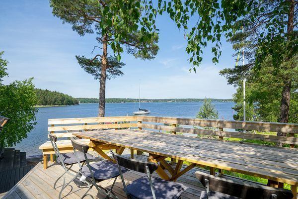 Fem minuter med egen båt till fastlandet där det finns både bil- och båtplats, som är bevakad nattetid.