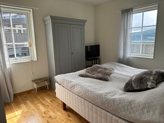 Tre sovrum varav två med våningssäng (90/90 samt 120/90) och det tredje med dubbelsäng (90+90). Badrum med bastu, dusch och toalett samt ytterligare en separat toalett i hallen. I hallen finns även torkskåp samt pjäxtork. Rymlig och solig balkong i sydvästläge med härlig utsikt över Åresjön. Lägenheten är ansluten till kabelnät samt fiber/wifi som ingår i hyran.