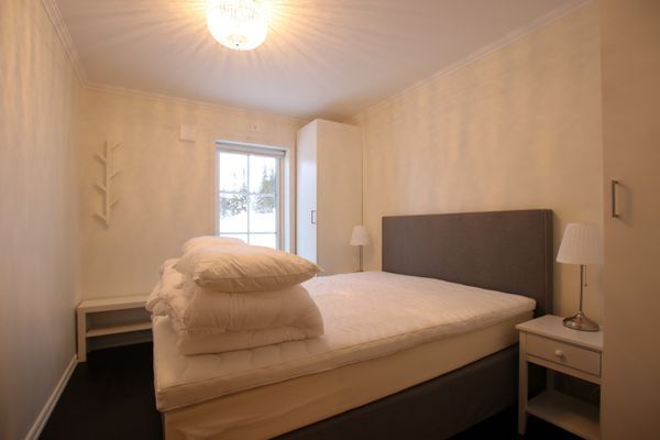 Sovrum 2: kontinentalsäng150 cm. 2 sängbord och skåp.