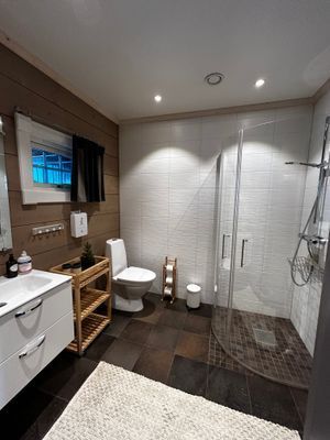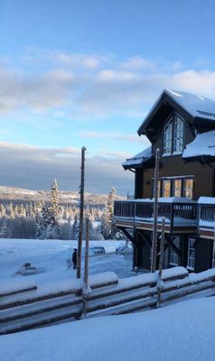 Timmerhus med härlig lodgekänsla i Village 3 Bearpeak (adress Björnängetunet 1K). Nära Hermlinsliften (300 m) för dig som vill åka slalom och ett stenkast (100 m) till längdspårsområdet (med elljusspår) för dig som vill kombinera med längdskidåkning.