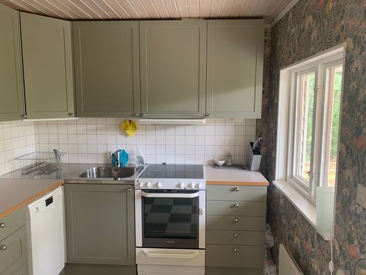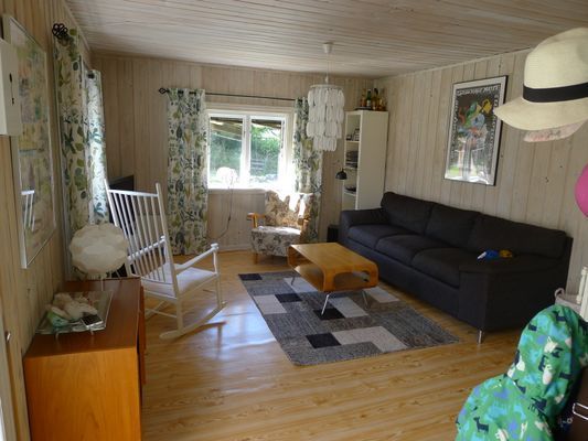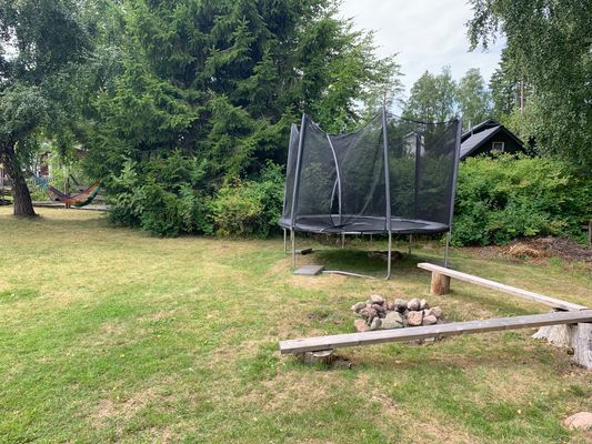 Ett stenkast från stugan finner du en mysig liten sandstrand med brygga. Stugan är fullt utrustad och det finns sovplatser för 7-8 personer i huvudstugan. Stugan är i två plan med totalt tre sovrum, vardagsrum, kök, matrum, två toaletter samt dusch. I ytterligare ett hus finns bastu samt dusch och toalett. Stugan ligger på en liten gata med 10-15 hus i övrigt omgiven av skog. Sjöutsikt från tomten. En grusväg leder ner till Vänern. En stor barnvänlig gräsmatta med sandlåda och lekstuga. Barnsäng och matstol finns samt utemöbler och grill.