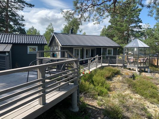 Nyligen renoverat sommarhus i Kaggebo fritidsområde i Tjust skärgård som vi hyr ut till familjer. Stugan är högt belägen och erbjuder en fantastisk utsikt över kobbar och skär. Fastigheten ligger på en stor naturtomt med fritt läge. Huset har öppen planlösning med öppen spis och helt nytt badrum med dusch, wc och tvättmaskin. I stugan finns 2 bäddar i ett sovrum samt 2 bäddar i bäddsoffa i kombinerat TV/sovrum. Förutom storstugan finns en gäststuga med toalett/dusch och 4 bäddar som kan hyras mot ett tillägg. Nybyggt däck på tomtens högsta punkt.
