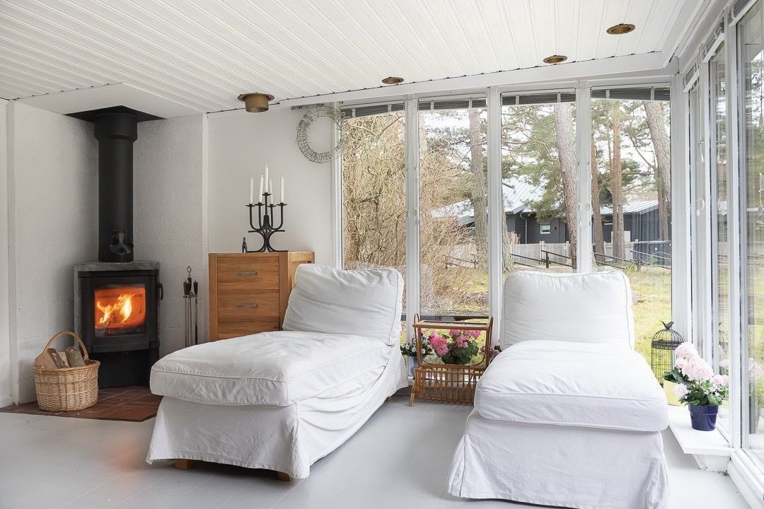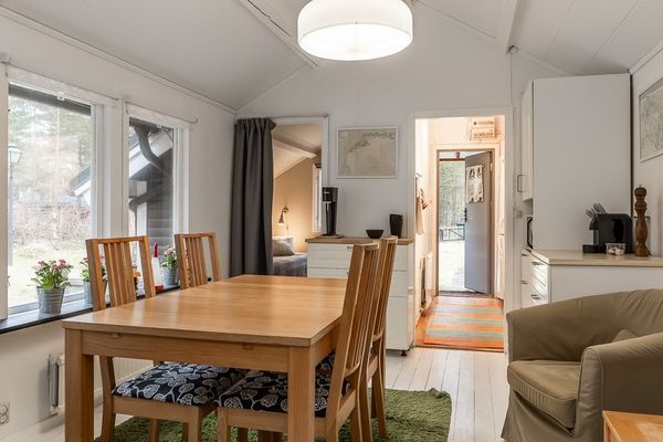 Stugan har två separata sovrum och två sällskapsrum. Ett sovrum med två separata dux sängar (90*200) och ett sovrum med våningssäng med (120*200) och (80*200) för tre personer. Ett sällskapsrum med matplats och ett sällskapsrum med bäddsoffa för två personer, TV, öppen spis och glasdörrar mot uteplats.