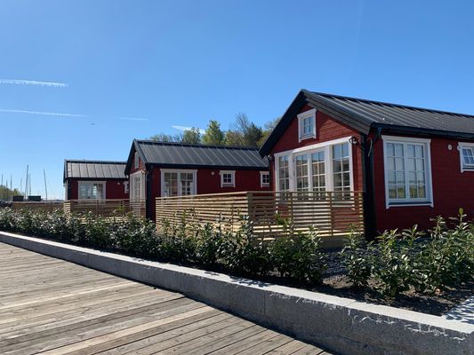 Stugorna ligger i skärgården, nära till Göta Kanal.