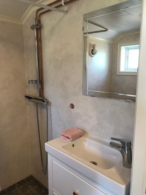 Mysig stuga i Klövsjö by med utsikt över byn, Klövsjön och fjällen. Två små sovrum med vardera en dubbelsäng 140 cm och en överslaf 80 cm. Allrum med kök, fullt utrustat. TV med många kanaler, WiFi. Badrum med dusch och tvättmaskin. Hall med torkskåp, skotork. Stort altangolv utanför huset.