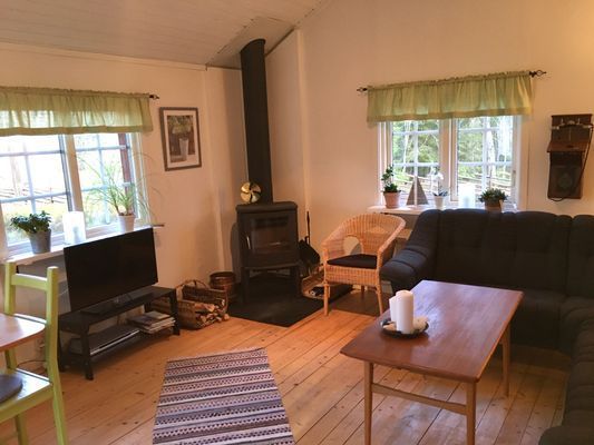 Stugan består av nybyggd del (40m2) med 2 sovrum, kök, toalett med dusch och tvättmaskin. + renoverat allrum (20 m2) med braskamin.