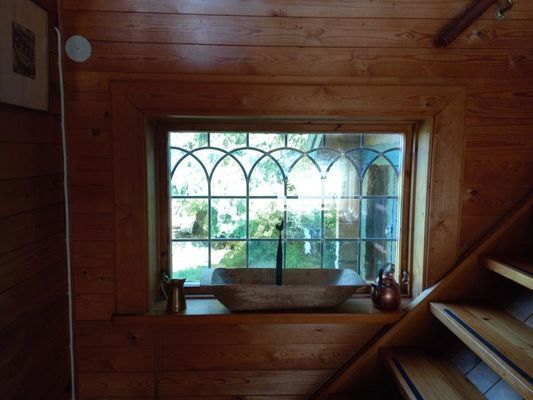 Björkhagen. Härbre i Siljansnäs (storstuga med sovloft) + utbyggnad med högt i tak. Stor mysfaktor, 70 m2. 4 bäddar.