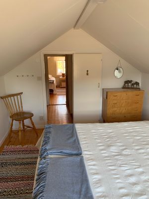 Ett rum med dubbelsäng och ett rum med två enkelsängar på övervåningen. På nedre plan i allrummet finns en bäddsoffa som rymmer 1-2 personer. Här finns även toalett med dusch. Köket är utrustat med spis/ugn, kyl/frys, micro och allt som behövs i ett modernt kök. Det finns resesäng för småbarn + barnstol i huset.