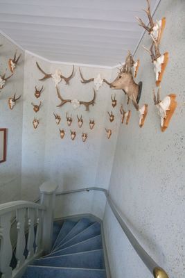 Övre plan inkluderar ett stort vardagsrum med två soffgrupper. En uteplats med utsikt mot havet och byn. Kök med sittplats för fem personer. Tre sovrum med enkelbädd och delat badrum. Ett större sovrum med två bäddar och anslutande badrum. Bastu, dusch och wc på nedre botten. Parkering på gården för två bilar. Huset är U-format och altanen med solstolar och matplats är vindskyddad.
