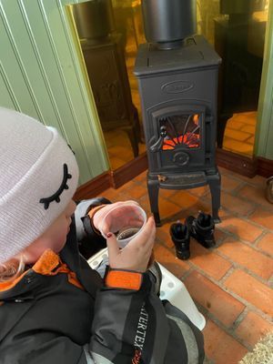 När vädret tillåter och det är is på vår damm får man gärna åka skridskor där.