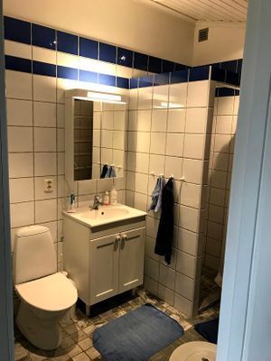 Ett av rummen har våningsäng (nedre del, 120 cm bred) - 2 sängplatser (3 ifall två personer ligger i nedre delen, bredd 120 cm) med nya madrasser samt skydd.