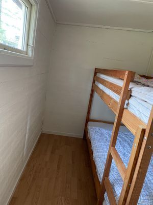 Annexet är 25 kvm stort, två rum med 4 bäddar, två enkelsängar plus en våningssäng i separat rum.