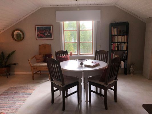 Huset består av två byggnader som binds samman av en hall. Perfekt för två familjer, ett större sällskap eller för dig som uppskattar stora härliga utrymmen.